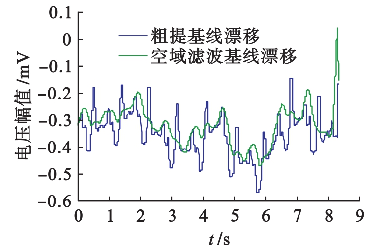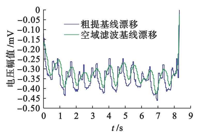 迭代过程虽在使用时是自动进行的,然而有学者 [7]在其研究中也指出相关参数的选择会影响算法滤除基线漂移信号的效果,因此,对粗提基线漂移信号做进一步滤波,可获得更精确的信号.