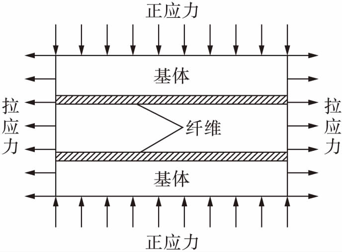 基于断裂力学的复合力学理论[6]认为,假定纤维连续均匀平行排列分布,且与受力方向一致,基体与纤维间无相对运动,两者产生相同应变,纤维与基体粘结完整且发生弹性变形.纤维力学模型如图1所示,该理论认为钢纤维承担了外荷载产生的一部分应力,使得钢纤维混凝土复合强度得以提高.