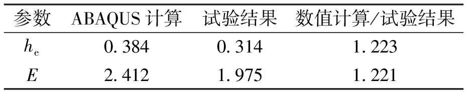 位移卸载段曲线与加载曲线围成的面积为结构耗散的能量.本文利用等效粘滞阻尼系数he和能量耗散系数E当做评价结构耗能能力的参考指标,等效粘滞阻尼系数越大,说明结构的耗能能力越强[9].表2为有限元计算和试验得到的等效粘滞阻尼系数与能量耗散系数的对比.有限元模拟没有考虑钢材在循环荷载作用下的塑性损伤引起的刚度退化,从而使有限元计算出的等效粘滞阻尼系数和能量耗散系数均略大于试验结果.