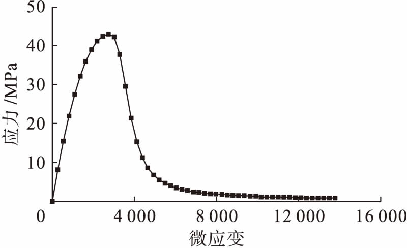 核心区混凝土受到方钢管柱的约束,其塑性能力得到提高,故普通混凝土单轴应力应变曲线无法反映出核心混凝土塑性性能的提升.为了充分考虑方钢管柱对核心区混凝土的约束效应,本文采用刘威[5]提出的核心区混凝土本构模型,如图2所示.刘威在谭清华等[6]提出的混凝土本构模型的基础上对其峰值和下降段进行了修改,使其更加适用于有限元分析,其应力应变关系的函数表达式为