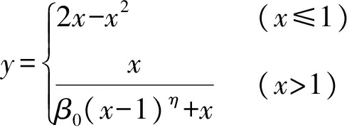 式中:x=ε/ε0,ε0=εc+800×10-6ξ0.2,ξ为截面的约束效应系数,ξ=asf/fc,as为构件的截面含钢率,fc为混凝土轴心抗压强度设计值,εc=10-6(1 300+12.5fc);y=σ/σ0,σ0=fc;η=1.6+1.5/x;β0=