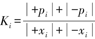 式中:Ki为割线刚度;+pi,-pi为第i次正、反向峰值点的荷载值;+xi,-xi为第i次正、反向峰值点的位移值.