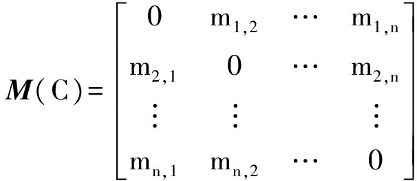 式中,mi,j为区别对象xi和xj的所有属性的集合,mi,j={a∈C∶f(xi,a)≠f(xj,a)},i,j∈[1,2,…,n],a为条件属性集C中的单个条件属性,则分辨矩阵可表示为