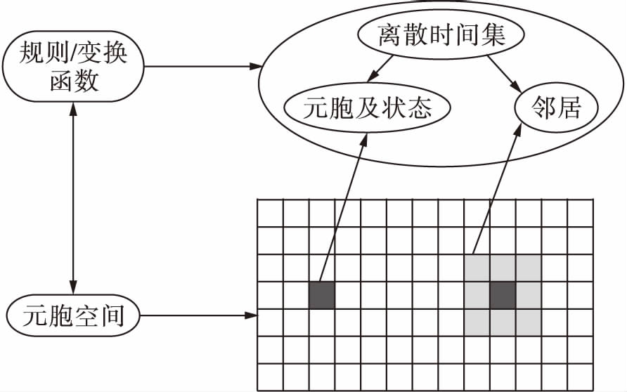 1) 元胞及状态.元胞分布在离散的1维、2维或多维欧几里德空间的晶格点上,元胞状态可以用二进制或者整数形式的离散集表示[13].