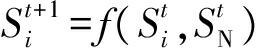 为t时刻邻居元胞的状态;f为元胞自动机的状态传递函数.