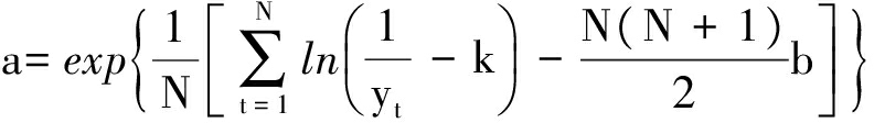 式中:t为时间变量;yt为电力负荷值;a、b、k为常数且k>0,a>0,b<0.