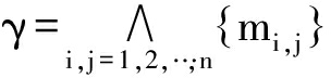 决策表的分辨函数是分辨矩阵的一个布尔函数,它是由分辨矩阵中所有元素的合取式(用∧表示)构成[15].分辨函数γ的函数表达式为