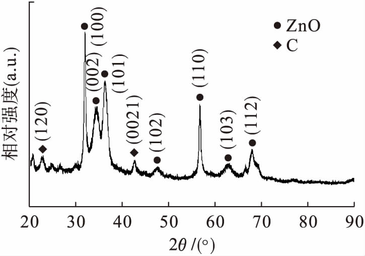 图2ZnO/C复合材料的XRD图谱