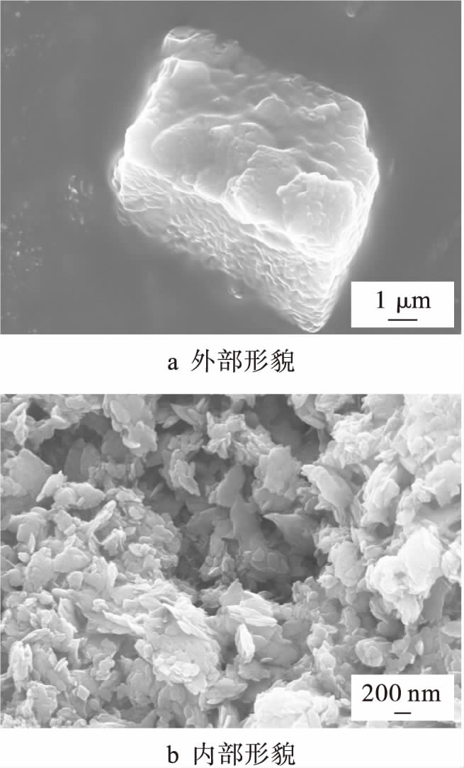 图3为金属有机骨架MOF-5晶体在400 ℃热处理前的SEM图像.由图3可见,未经热处理时,金属有机骨架MOF-5晶体的外部形貌呈现边长约为5 μm的立方体形态,内部形貌为多孔中空结构.