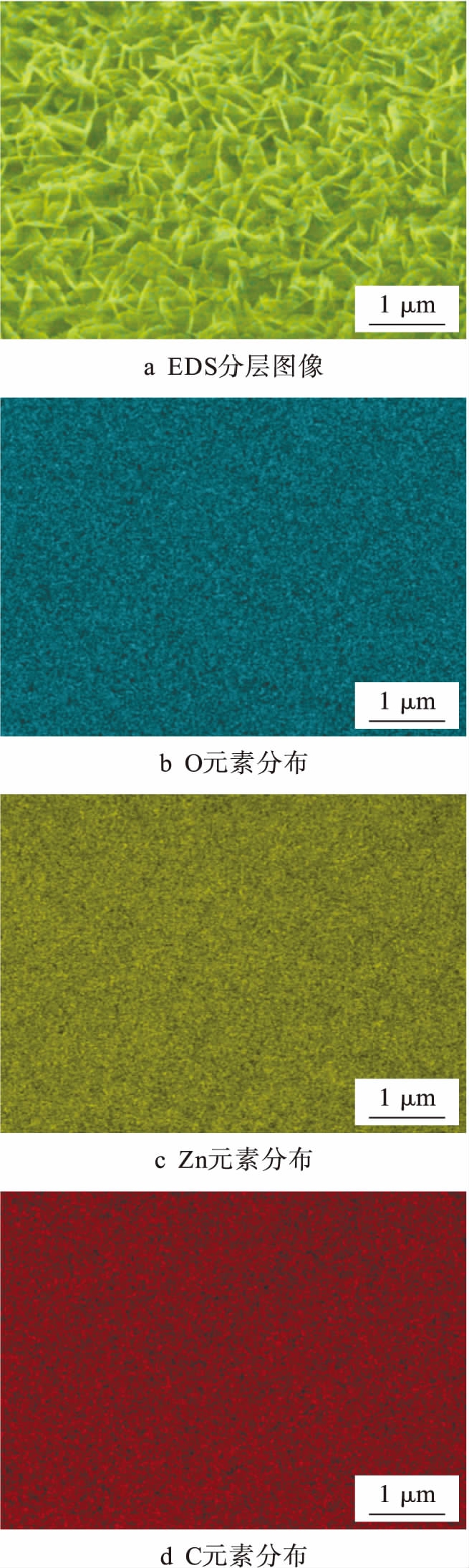 图6ZnO/C复合材料的EDS分层图像与元素分布映像图