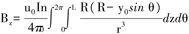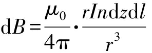 式中:r为电流环到P的距离;I为发射线圈上电流;n为发射线圈单位长度匝数;dl为电流的微小线元素.