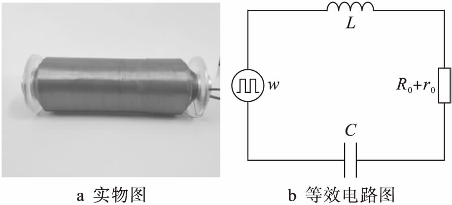 为提高发射线圈发射信号磁场强度,选择合适匹配电容与发射线圈构成串联谐振回路,发射线圈及其等效电路如图6所示.