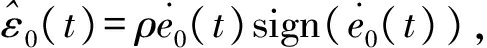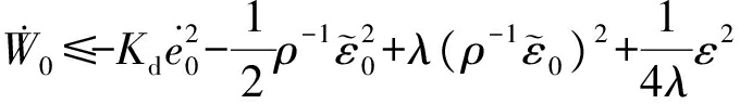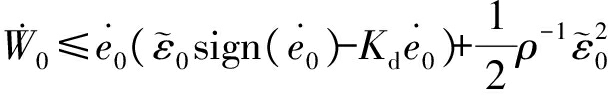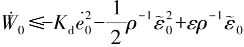 为未知参数ε的估计值,其上一次迭代的终值被用于本次迭代的初值;ρ为自适应学习增益.由控制律可以看出自适应迭代项用来辨识未知参数,处理参数摄动.由于微分项的引入也易引入高频干扰,为了保留系统有效的控制输入信号,设计Q的截止频率ω应大于期望轨迹的固有频率,小于高频扰动信号的频率.