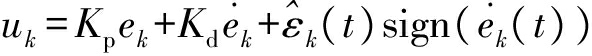 式中:ΔA、ΔB为系统参数摄动所引起的不确定量;D为系统不确定量的总和.设D为有界不确定量D=Hrand(1)sint,其中,H为不确定量扰动的幅值.