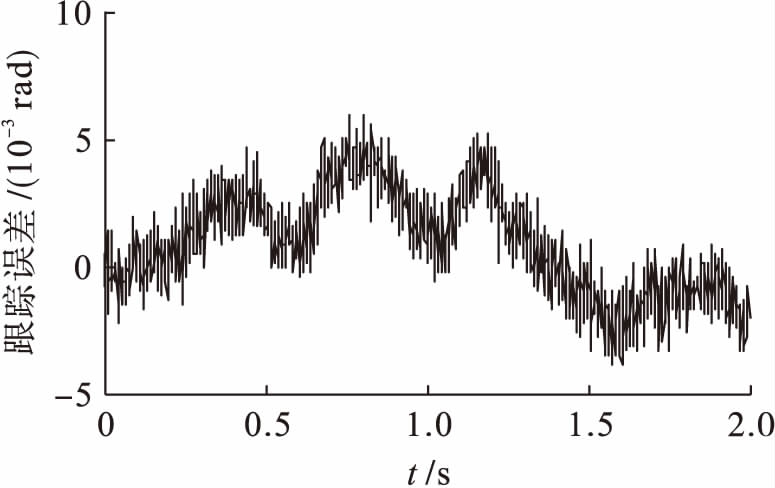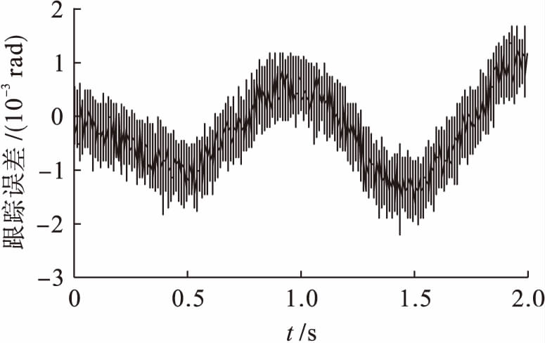 图5、6分别为PD型ILC和AILC迭代20次后的跟踪误差曲线.由图5可以看出PD型ILC的最大跟踪误差约为5.1×10-3rad;而图6中AILC的最大跟踪误差仅为1.7×10-3rad,由此可以看出AILC的最大位置跟踪误差减小了约2/3.
