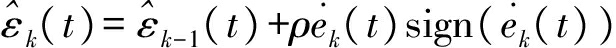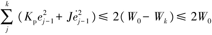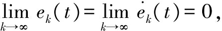 由以上假设可以看出,系统的初始状态相同且参数有界,其与机械手臂运动状态相吻合,因此,该系统适用于机械手臂系统.考虑其特性及以上假设,设计控制律和参数自适应迭代学习律分别为