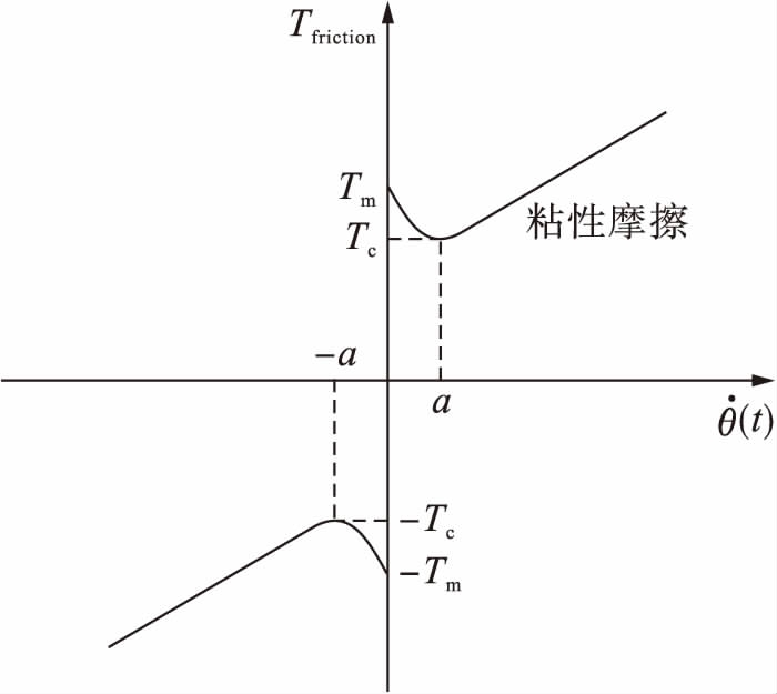 式中:Tc为库仑摩擦转矩;Tm为最大静摩擦转矩;a为一个非常小的转数,其与摩擦、转速关系曲线如图1所示.