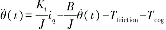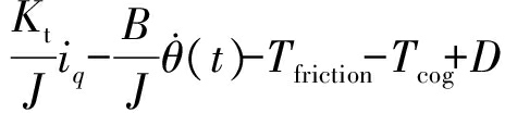 为角加速度;J为转动惯量;Te为电磁转矩;Td为扰动;Kt为转矩系数;B为粘滞摩擦系数.
