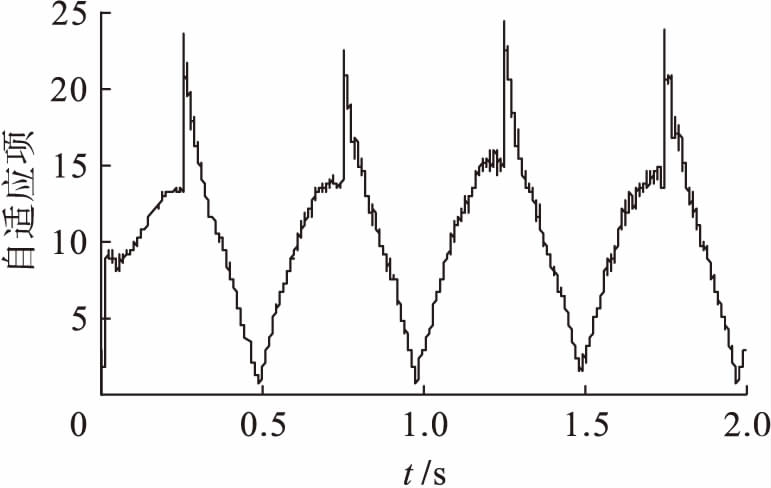 图4为自适应迭代项在第20次迭代时的变化情况.由图4可以看出,除了初始阶段,自适应项基本符合周期为0.5 s的变化,而且其值始终为正,符合自适应学习律.