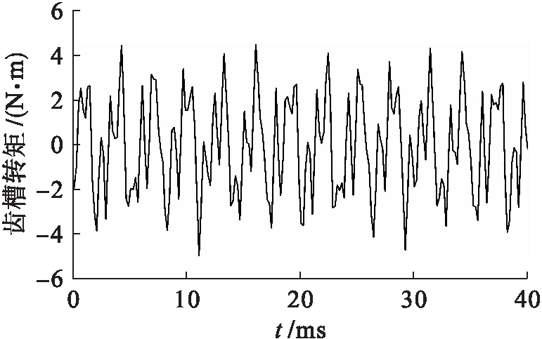 q=0.5时电机的齿槽转矩波形如图4所示,从仿真结果中可以看出,齿槽转矩呈周期性变化,符合径向磁通旋转电机的特点,齿槽转矩的幅值为5.12 N·m,相比额定转矩为9.67 N·m,所占比例过大,电机运行时会带来很大震动及噪声,且当电机低速运行时更为明显.