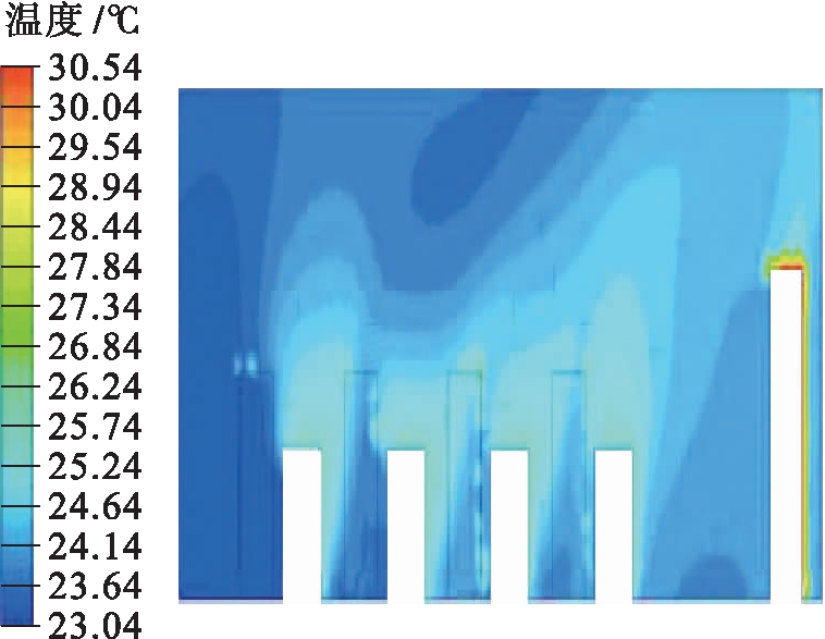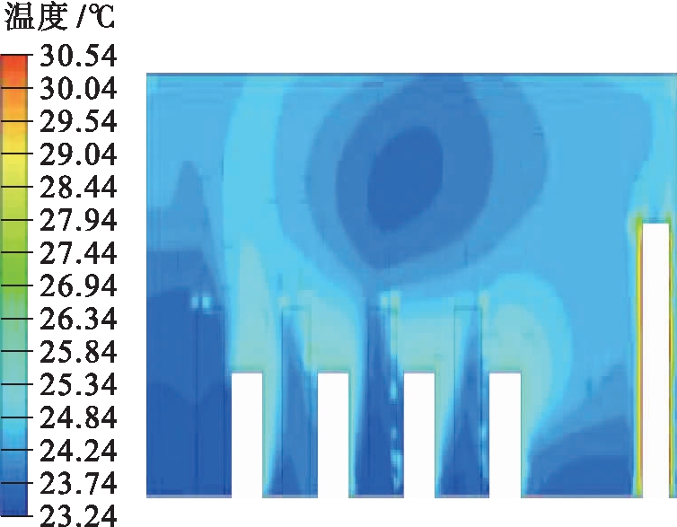 Fig.3 Temperature distribution under sideair supply mode with Z=1.2 m