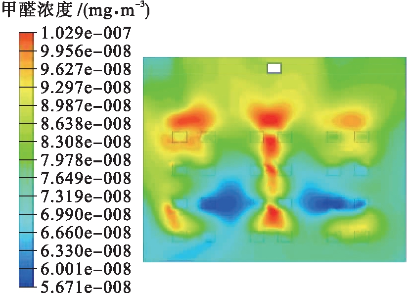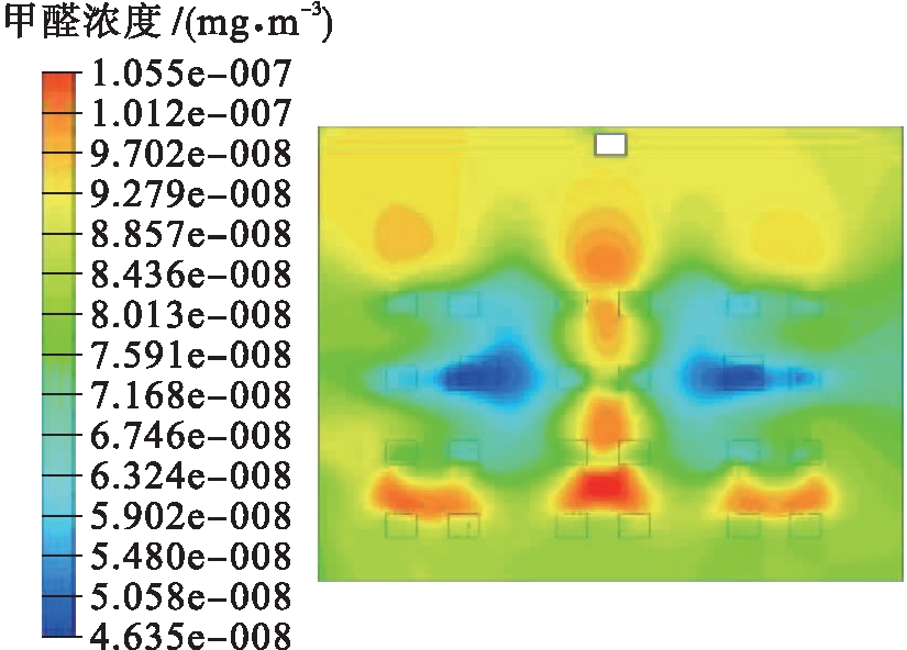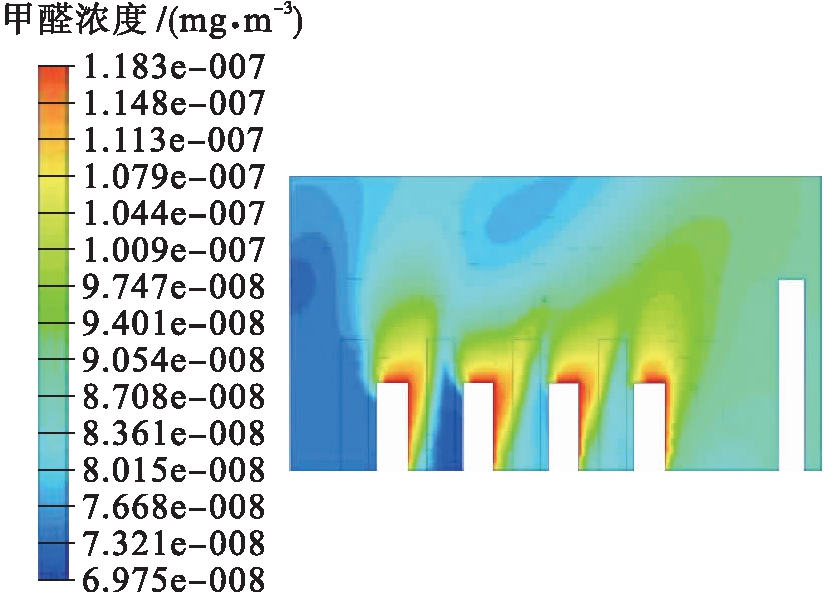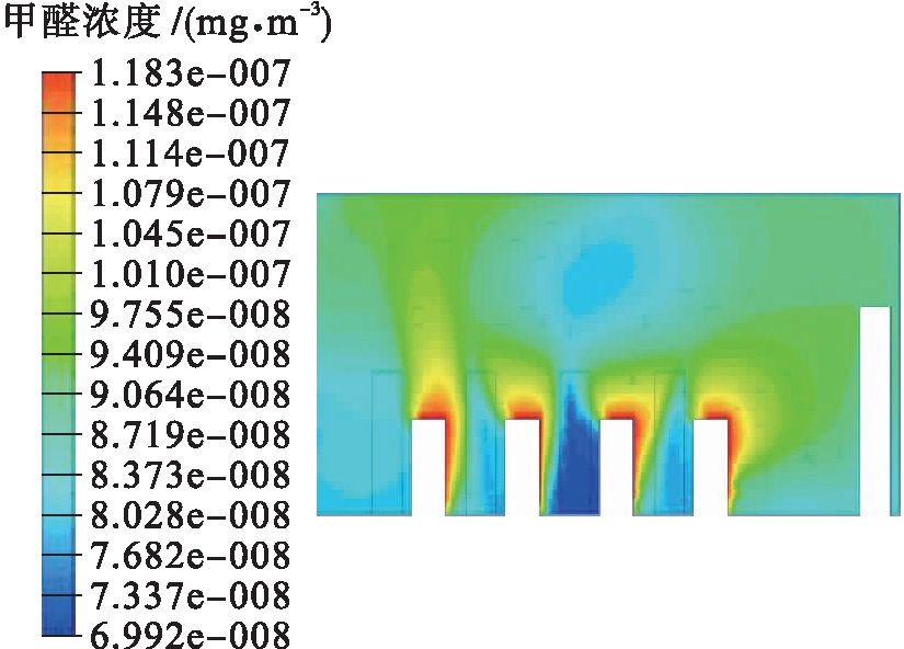 Fig.8 Formaldehyde concentration under topair supply mode with Z=1.2 m