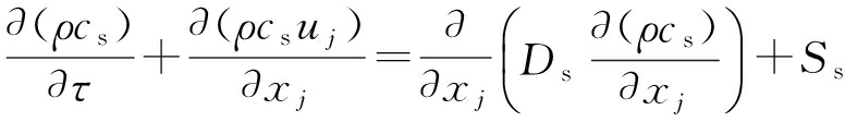 由于本文模拟了污染物(甲醛)从桌子表面向会议室内扩散的过程,应用到组分传输模型,因此,控制方程还应包括组分质量守恒方程,其表达式为