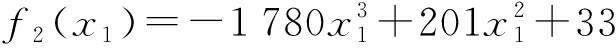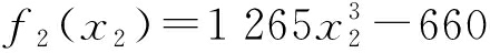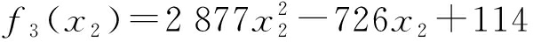 利用表1中单独添加稀土方案的数据,假设稀土含量x2∈[0,0.25],合金产品的抗拉强度、伸长率和热裂倾向值分别为f1(x2)、f2(x2)和f3(x2),可得合金的三个指标关于稀土含量的拟合函数图像如图2所示.