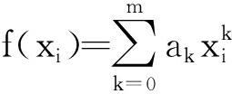假设给定已知数据点的坐标为(xi,yi)(i=1,2,…,n),则其多项式拟合函数,其中,ak为多项式系数.已知数据点的误差平方和δ