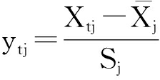3) 将原始数据矩阵标准化后,得出标准化后的数据矩阵.令表示原始指标数据标准化后的元素,得到由原有随机向量样本生成标准化后的样本矩阵Y=(ytj)N×p.