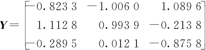 4) 三个指标的相关矩阵特征值分别为λ1=0、λ2=0.599 3和λ3=2.400 7.正则化特征向量矩阵为
