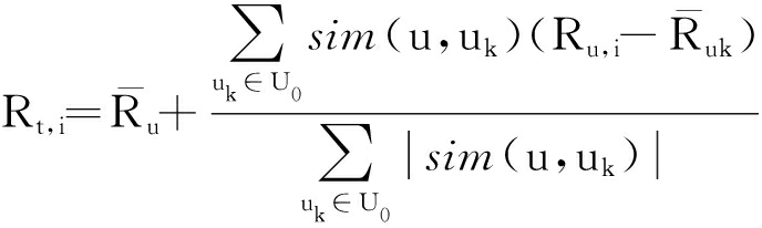 式中:Rt,i为用户t对用户i的评价;为用户u在评价集合U0中的评价均值;