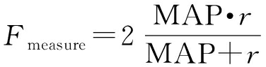 本文引入了Fmeasure和MAP(mean average precision)两项指标来衡量算法协同推荐的准确 性.Fmeasure表示准确率和召回率的调和平均值,该值越高则表明推荐算法的综合性能越好;MAP表示对每个用户推荐结果的平均值,该值越高,表明推荐算法的总体推荐质量越好.