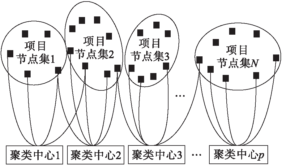 图3 二分图网络中聚类中心与项目节点集的关系模型