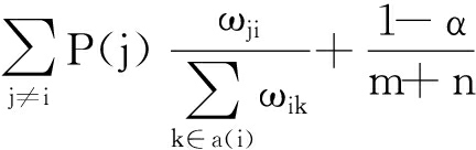 定义2 用户中心度.G={U,O,E}表示某二分图网络,借鉴PageRank算法的中心度定义,将网络G中任意节点i的中心度P表示为