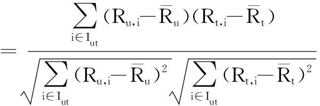 式中:Ru,i为用户u对用户i的评价;为用户u所有评价的均值;Iut为用户集合.