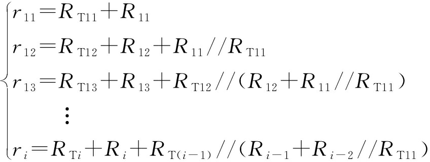 由于集电线路电抗Xi和光伏发电单元升压变压器电抗XTi不会因为无功输出而产生有功损耗,因此,集电线路电阻Ri和光伏发电单元升压变压器电阻RTi是光伏电站产生有功损耗的主要因素,令ri为第i个光伏发电单元出口到光伏电站并网点的等效电阻,其计算式为