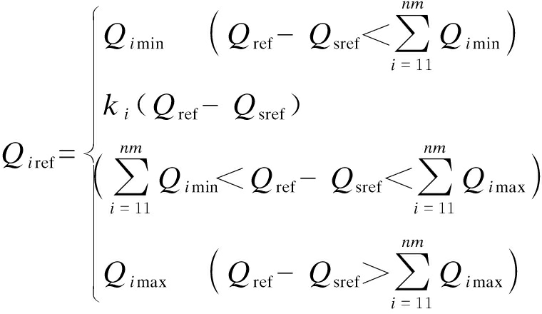 1) 当无功参考量Qsmin<Qref<Qsmax时,SVG分配到的无功参考量为