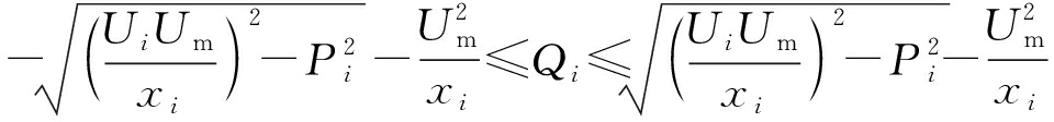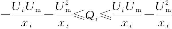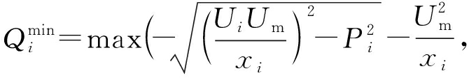 综上所述,当同时考虑线路阻抗限制和逆变器视在功率限制时,由式(4)和式(7)可得第i台光伏逆变器的无功容量为