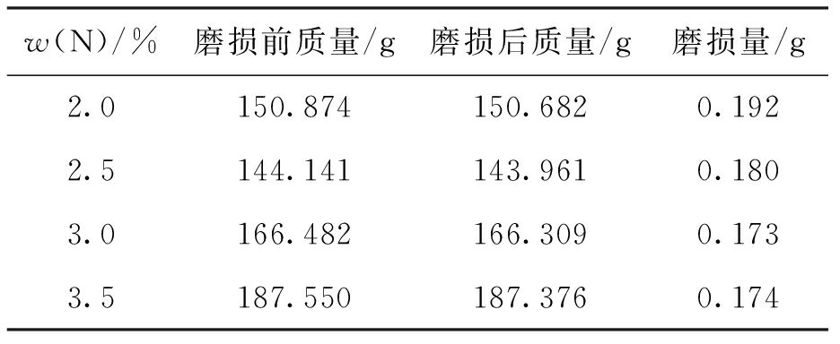 Tab.4 Wear weight loss of the surfacing layers with different contents of N