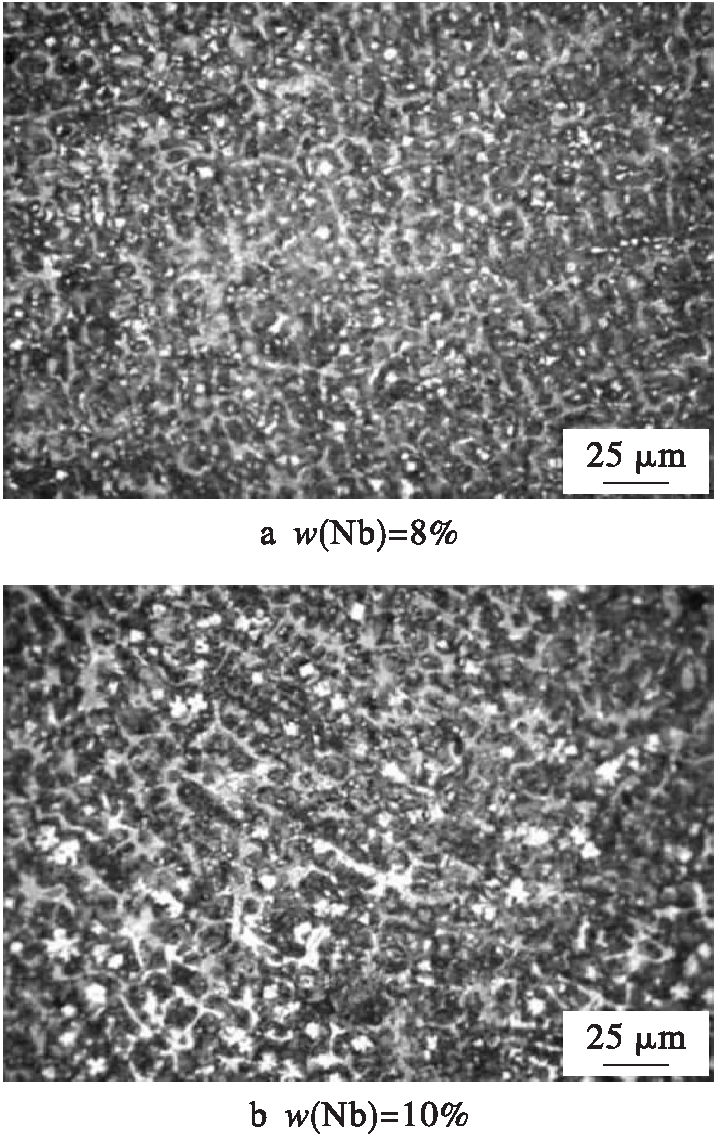 固定N元素的添加量为2.5%,通过改变Nb元素的添加量获得不同堆焊层,所得堆焊层的显微组织如图2所示.