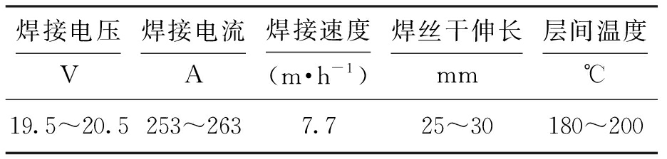 堆焊工艺参数主要包括焊接电流、焊接电压、焊接速度和层间温度.对于自保护药芯焊丝明弧堆焊方法而言,选择合适的堆焊工艺参数是保证堆焊层的成型性、化学成分和力学性能的首要条件.经过多次调试后得到自保护明弧堆焊的最佳工艺参数,结果如表1所示.