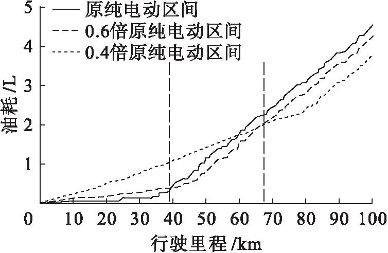 图4 不同纯电动区间下油耗分析
