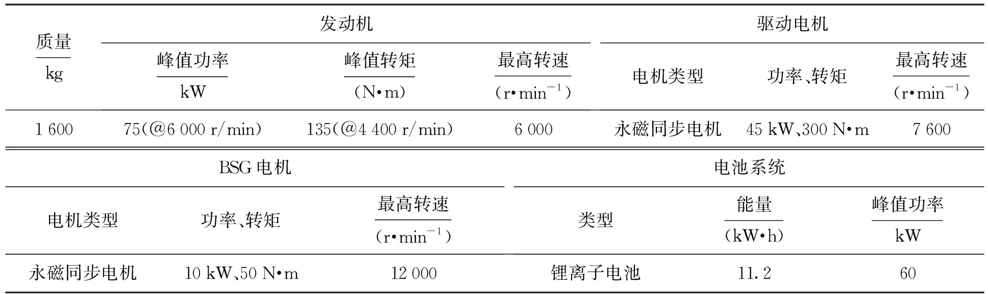 表1 汽车参数
