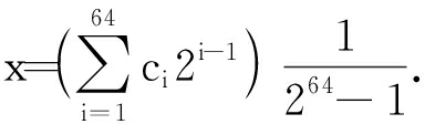 初值b中每个元素的取值范围为[0,1],为了保证精度,本文选取长度为64的二进制数来表示该参数,它能产生264种不同的编码.