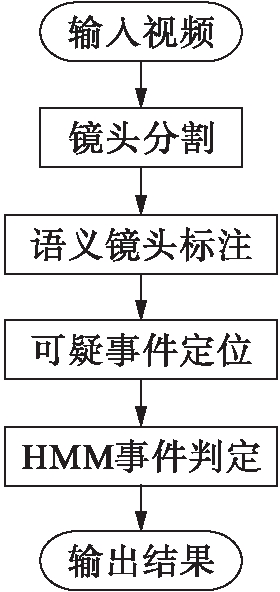 本文以足球比赛视频中的进球事件为例,介绍了一种机器学习和人工规则相结合的事件检测方法,其流程图如图1所示,具体步骤如下: