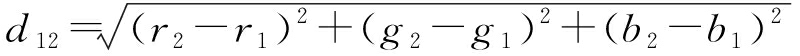 聚类技术从三维视觉服装图像的最高结构顶点开始进行融合,需要应用到图像的色彩度,分别用(r1,g1,b1)和(r2,g2,b2)表示两个最高的结构顶点坐标,其间距为