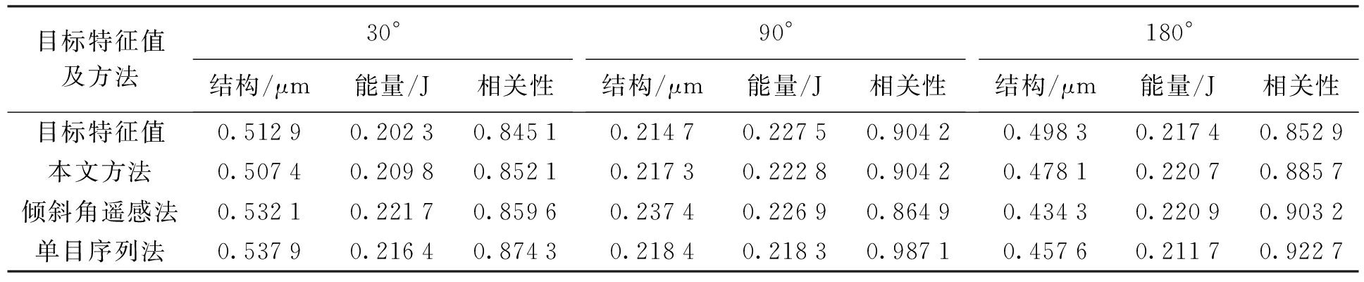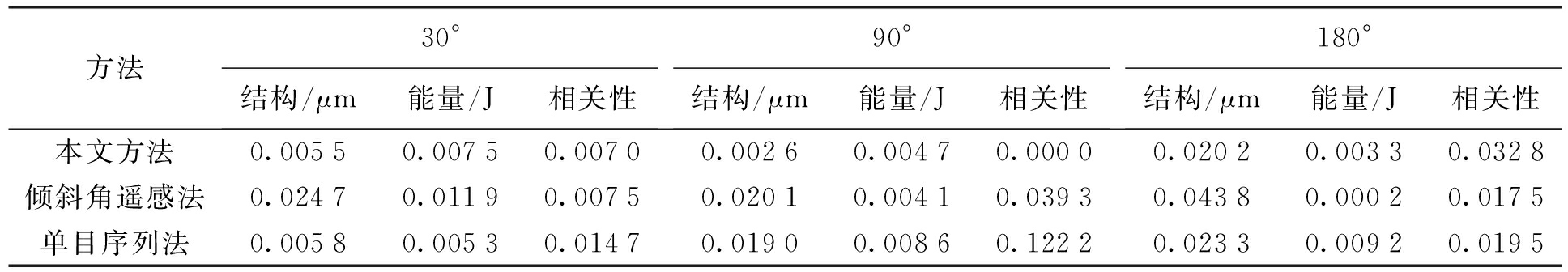实验所用的服装信息在提取角度为30°、90°和180°时拥有结构、能量和相关性3个重要特征类型,相关提取信息结果如表2所示.