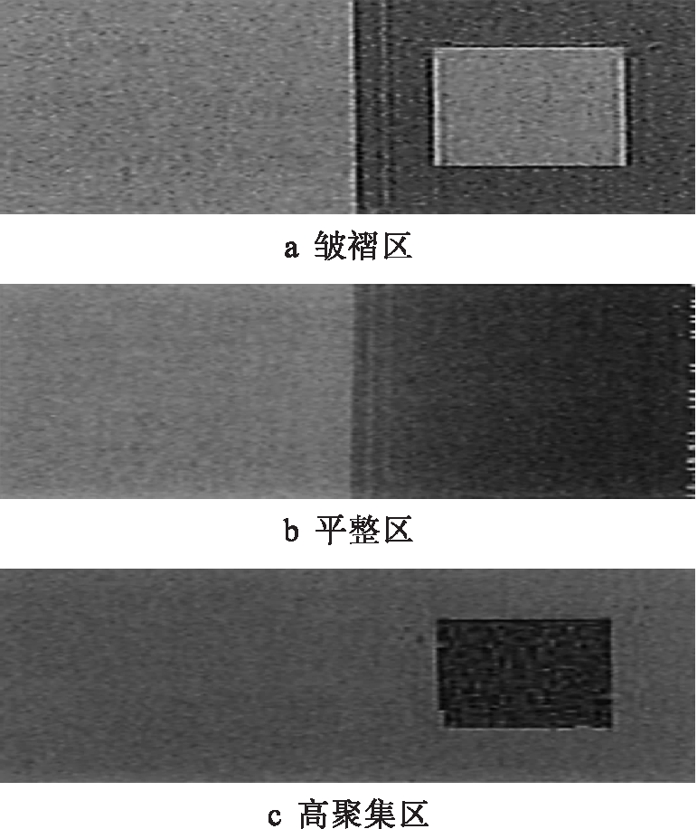 在三维视觉图像中,两点之间的距离可直接用来评价块与块之间的特征差值,大致切割出图像特征区域.图2为三维数据图像皱褶区、平整区、高聚集区的聚类前像素点示例图,可以看到未经聚类技术处理之前,高聚集区的特征差值独立区过小,皱褶区的切割块之间难以分离,仅平整区的切割效果可用,这些情况不利于进行服装信息精准提取[9].