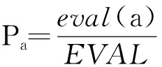 在执行过程中,算法的步骤还涉及到“轮盘赌”的概率选择运算[9].该运算的计算过程为:计算单个个体a的目标函数值E(a)和适应度eval(a),同时计算出个体所在群A的总适应度